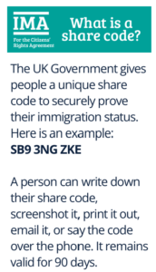The UK Government gives people a unique share code to securely prove their immigration status.